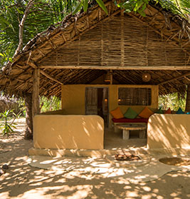 Accommodation at Bar Reef Resort, Alankuda features Three kinds of settings; Seven garden cabanas, Seven Beach Cabanas and Two villas. Each of these is set within their own private enclosures amidst beautiful natural surroundings, individually landscaped for each property, with an open-air bathroom and toilet to make you one with nature. The gentle rustling of the palm fronds amid soft golden rays together with the feel of the ocean sand beneath your feet will awaken your mind to a feeling of blissful relaxation, that can only be found at Bar Reef Resort.